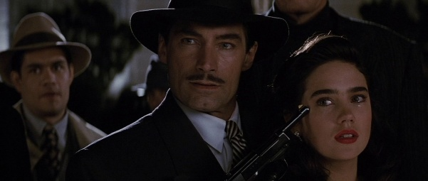 The movie also features Cliff’s aspiring actress girlfriend Jenny Blake, played by Jennifer Connelly. The Rocketeer would be a welcome role for Connelly, whose acting career had ebbed in the years following her starring role in the cult classic Labyrinth. Teenage boys everywhere were happy to see her return to the screen. We also get a post-Bond Timothy Dalton as nefarious movie star Neville Sinclair. In addition, the film features an impressive supporting cast, including Paul Sorvino as mob boss Eddie Valentine, Alan Arkin as Cliff’s mechanic and mentor A. “Peevy” Peabody, and Terry O’Quinn as Howard Hughes (of real-life Hughes Aircraft Company), to name a few. The entire cast shines and brings the story to life, but some performances stood out to me more than others.