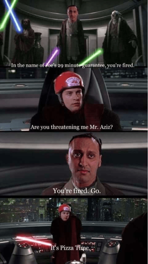 Or how this entry, the most-memed film of the three, gave birth to what was one of the most popular online meme references for years. There is a scene early on where Peter, trying to keep his job as a pizza delivery boy, announces to a customer that he has completed his delivery and that it’s “Pizza Time.”