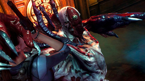 Other villains see the virus as simply a means to an end. RE 6’s Carla Radames and RE: RE: Revelations’ Jack Norman are both betrayed by the organizations that employ them. Once learning of their betrayal, both make use of viruses at their disposal to grant them the power to destroy those who have wronged them. They experience varying degrees of success. Though Carla Radames is able to infect her former employer and betrayer, Derek Simmons, with a painful and deadly form of the C-virus she infects herself with, she herself is killed before seeing him meet his end. Bioterrorist Jack Norman is trapped deep underwater in a submarine as a result of the events of his betrayal and attempts to use a sample of the T-Abyss virus he once used to kill innocents to grant him power to break free of his prison and kill his betrayers. He is killed by the story’s heroes before his mindless rampage can claim any further victims. Both welcome the physical, monstrous changes their respective viruses provide, but only as a means to the short-term goal of getting revenge.