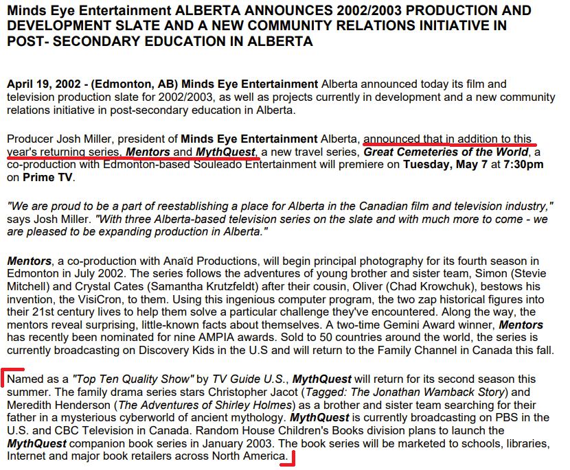 The show’s future looked bright as well, and I’ve even found articles as well as statements from Mind’s Eye Productions which both talk about the future plans for the show.